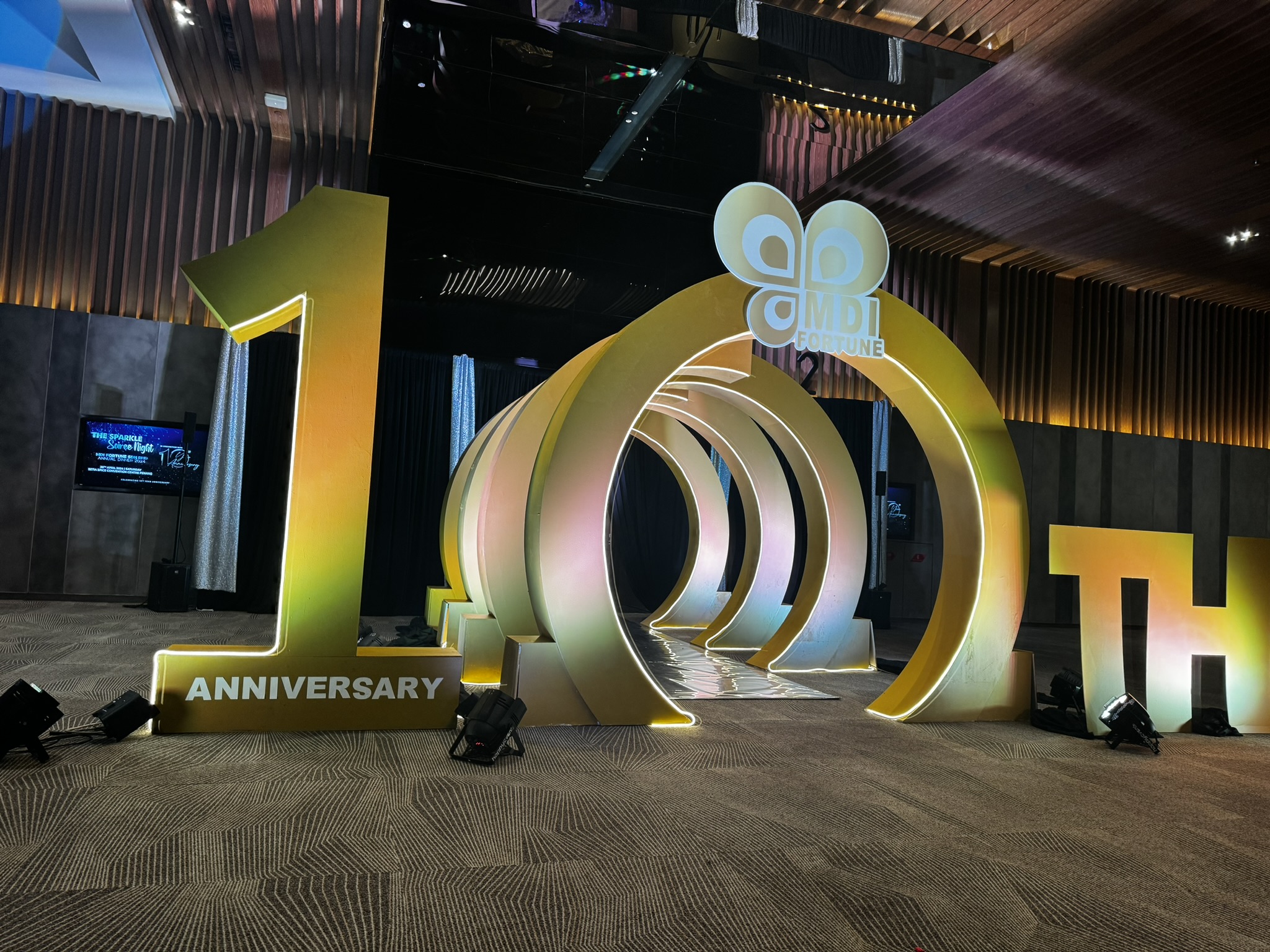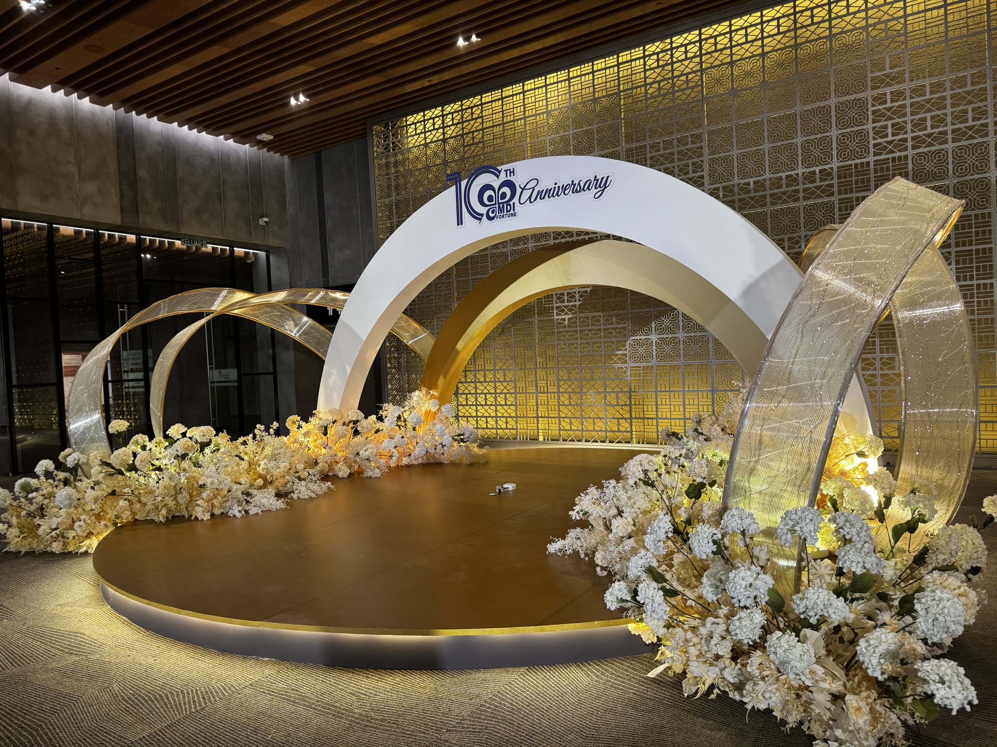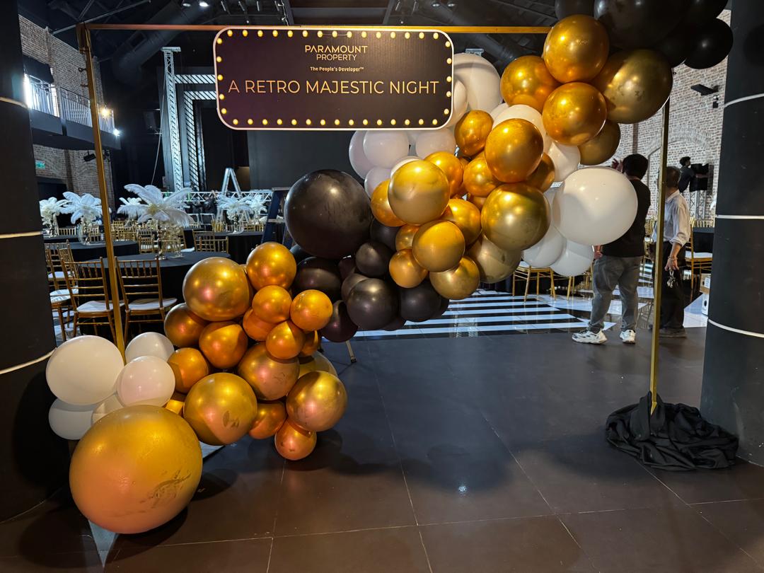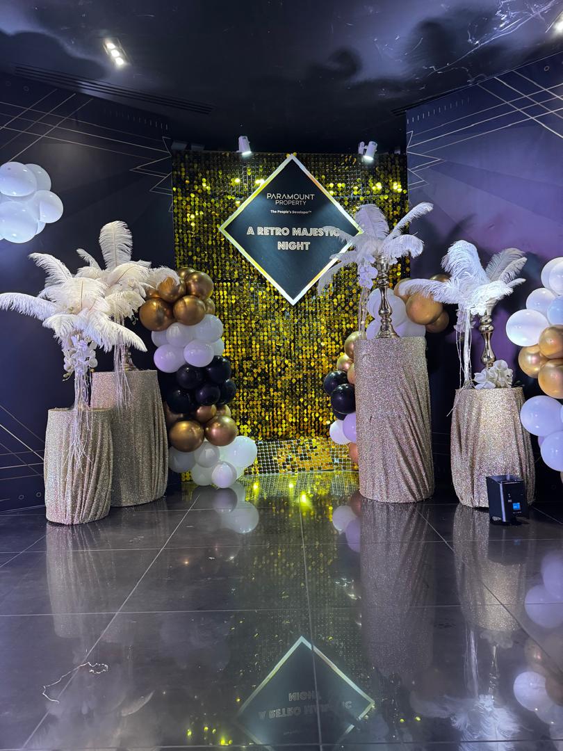 Full gala production — themed decor, stage backdrop, entrance feature, full venue styling